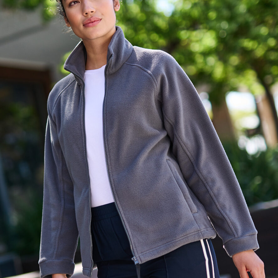 280 series anti-pill symmetry fleece with fleece cuffs. 2 zipped lower pockets. Adjustable shockcord hem.