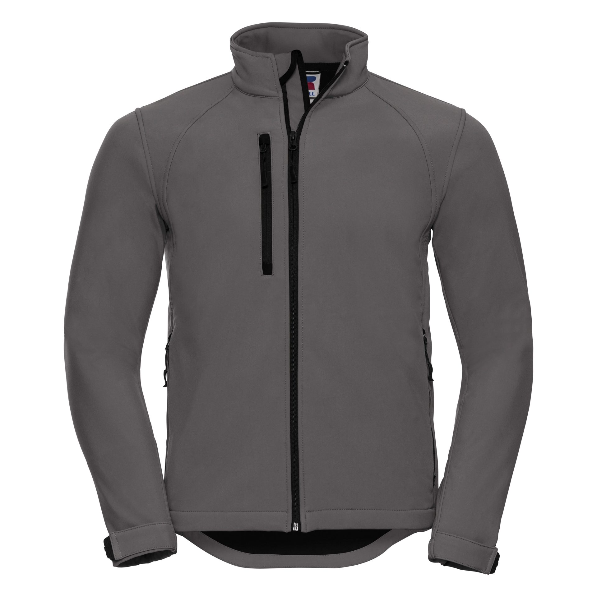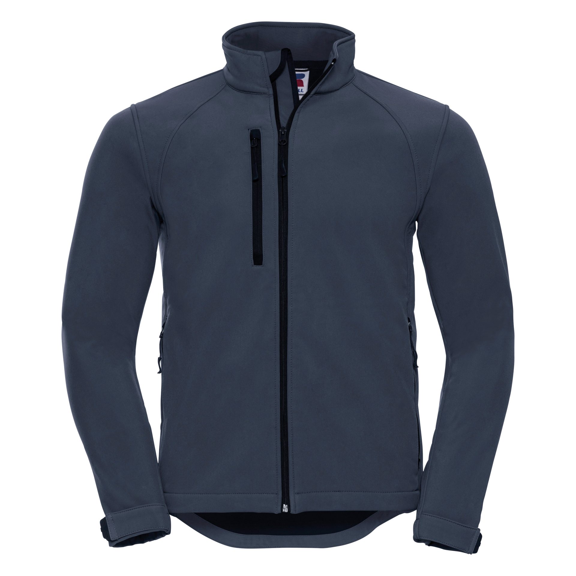 3 layer softshell fabric with breathable membrane and bonded microfleece lining, water resistant to 5000mm. Side pockets and chest pocket with inner lining, reversed zip and cord pulls. Full zip with inner storm flap and zip neck protector at collar. Bungee cord in hem. Adjustable cuffs. Drop tail. Large left chest side decoration access. Fully launderable at 40C.